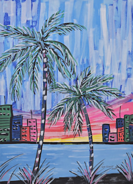 This beauty is a cool ART DECO painting of my Cozumel view one morning. Again, I paint from my memory